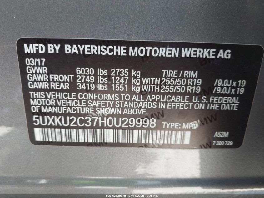 2017 BMW X6 | 5UXKU2C37H0U29998