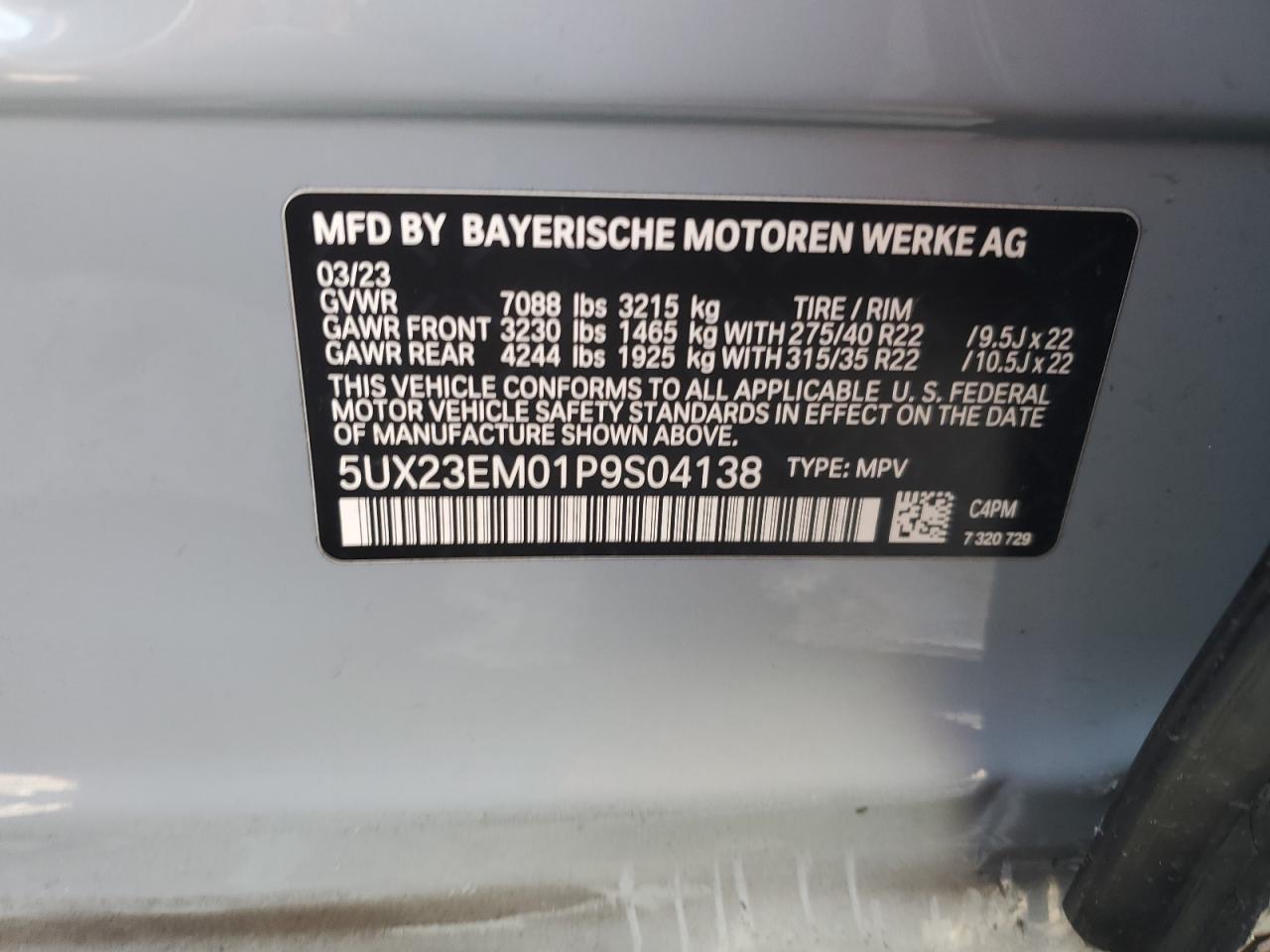 2023 BMW X7 | 5UX23EM01P9S04138