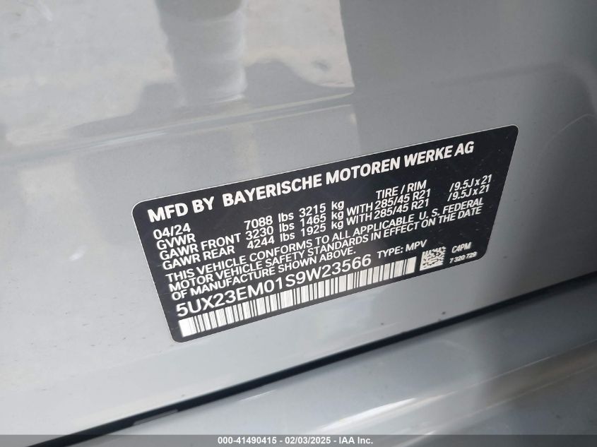 2025 BMW X7 | 5UX23EM01S9W23566