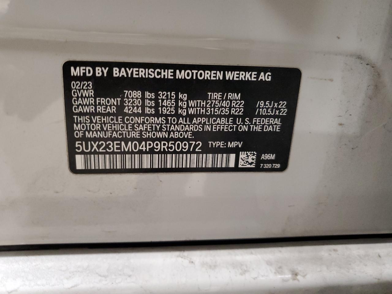 2023 BMW X7 | 5UX23EM04P9R50972