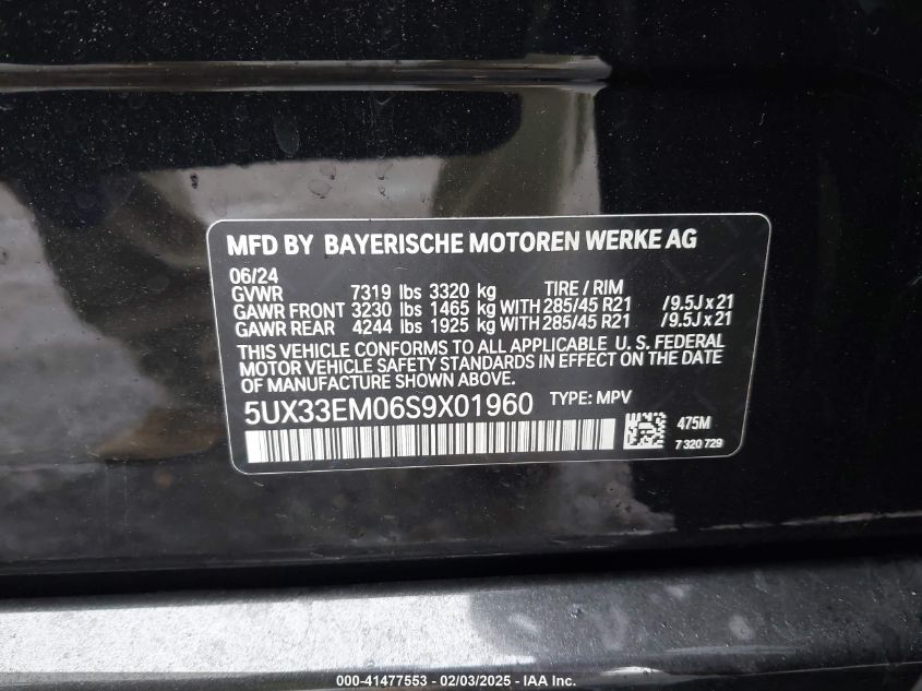 2025 BMW X7 | 5UX33EM06S9X01960