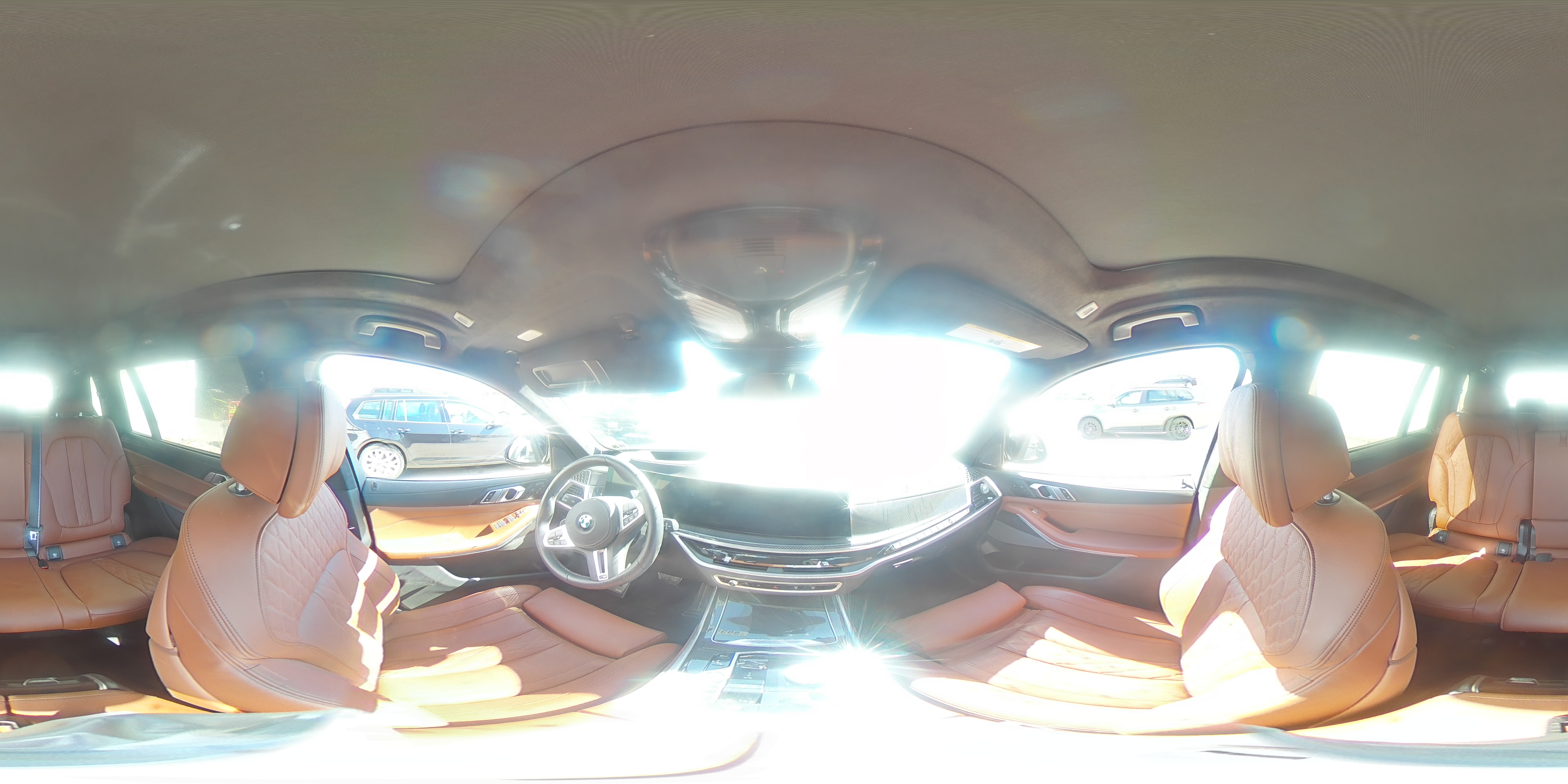 The BMW X7 was the first BMW SUV to offer optional second-row Captain’s Chairs, creating a genuine executive 6-seat configuration. Its optional Sky Lounge panoramic roof projects ambient LED starlight into the glass surface at night — a detail inspired by the Rolls-Royce Starlight Headliner (also under the BMW Group umbrella). Despite its size, the X7 can be optioned with rear-axle steering, allowing it to perform tight parking maneuvers like a sedan half its length.