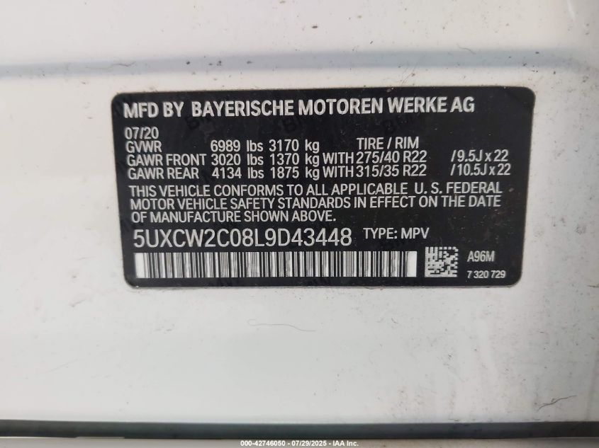 2020 BMW X7 | 5UXCW2C08L9D43448