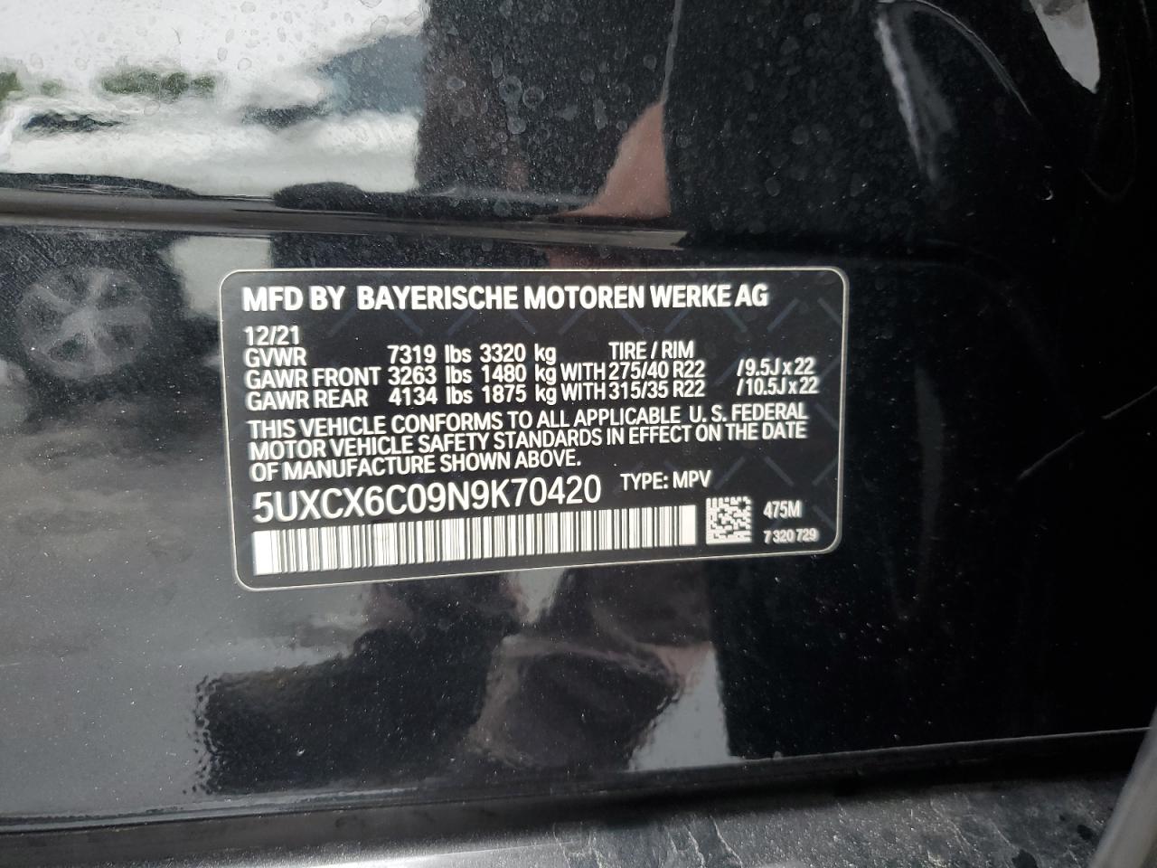 2022 BMW X7 | 5UXCX6C09N9K70420