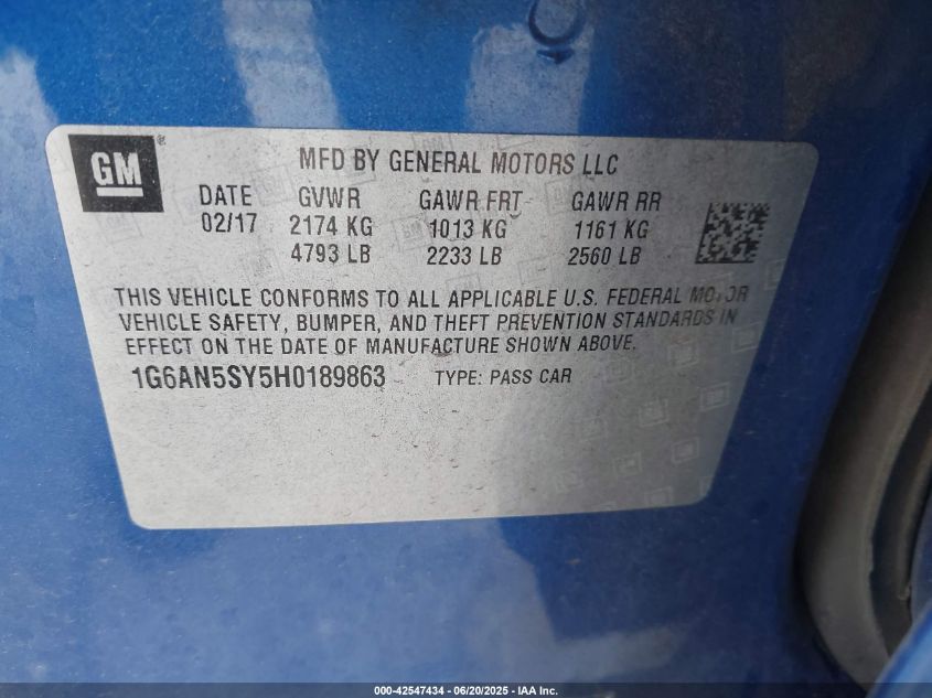 2017 CADILLAC ATS | 1G6AN5SY5H0189863