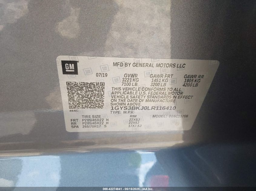 2020 CADILLAC ESCALADE | 1GYS3BKJ0LR116410