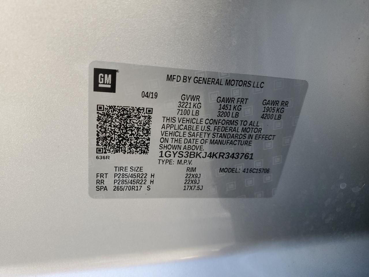 2019 CADILLAC ESCALADE | 1GYS3BKJ4KR343761