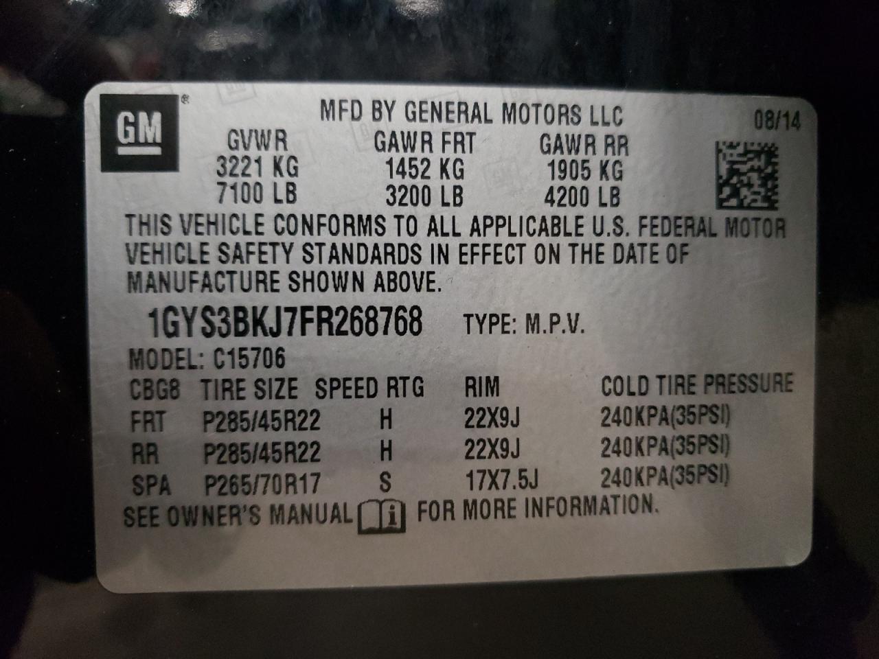 ❯2015 CADILLAC ESCALADE | 1GYS3BKJ7FR268768