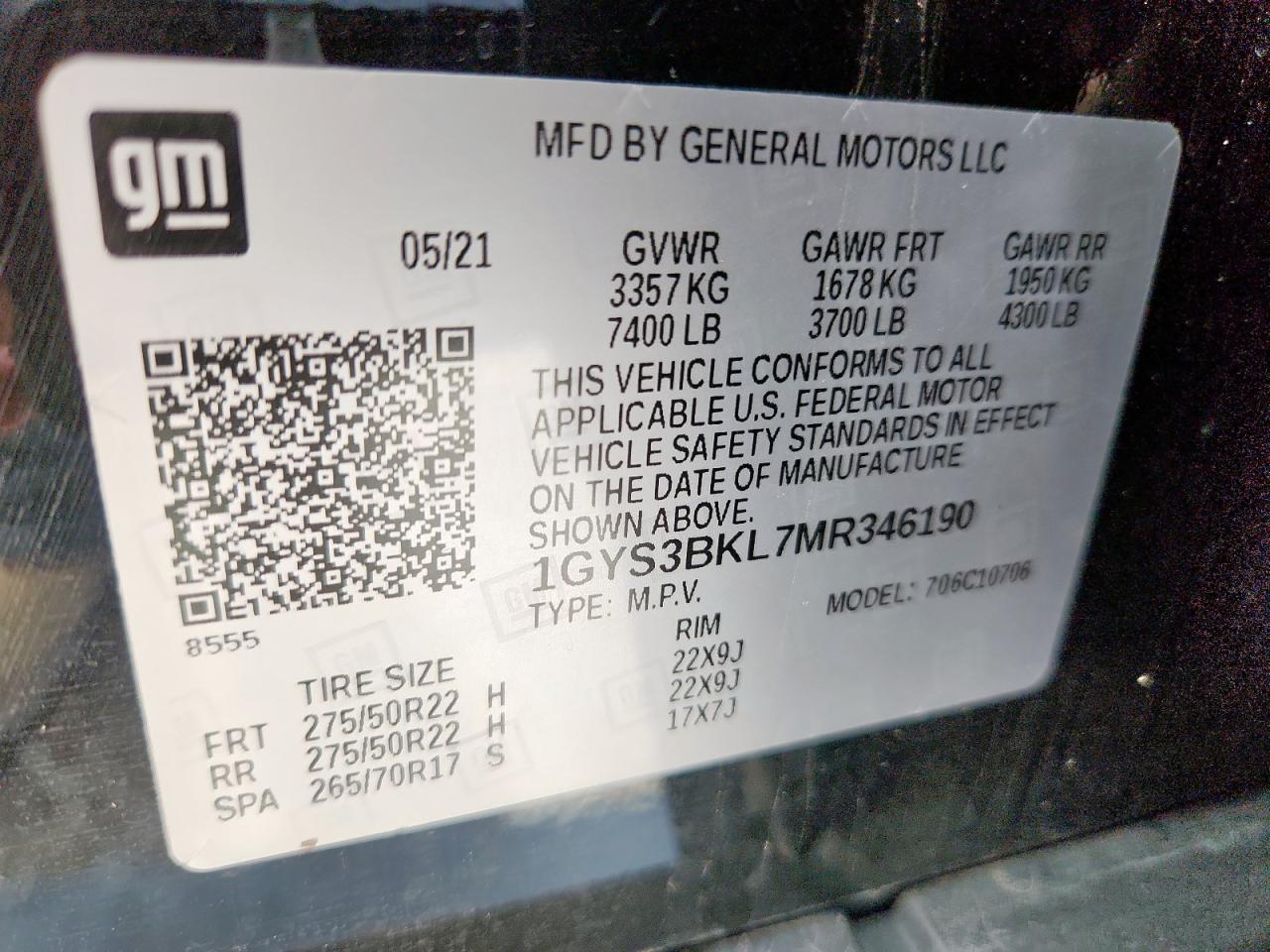 2021 CADILLAC ESCALADE | 1GYS3BKL7MR346190