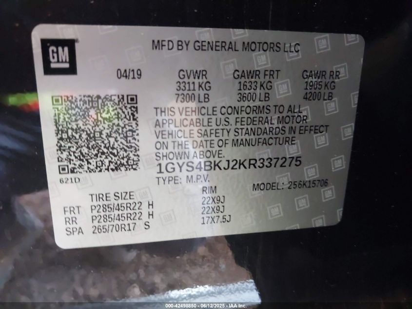 2019 CADILLAC ESCALADE | 1GYS4BKJ2KR337275