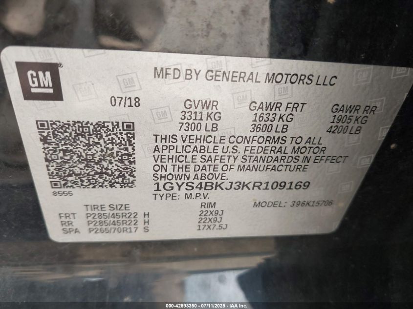 2019 CADILLAC ESCALADE | 1GYS4BKJ3KR109169