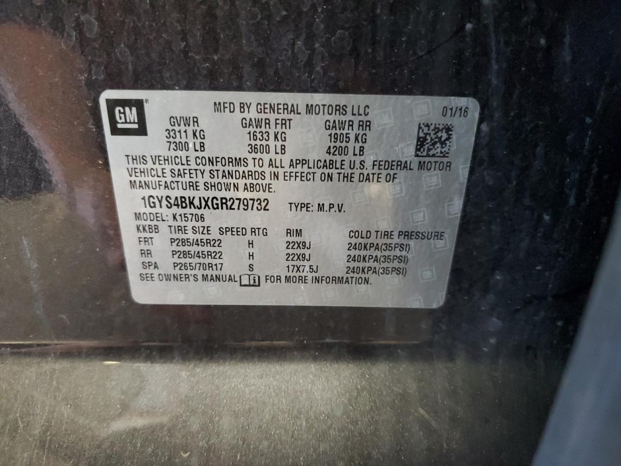 2016 CADILLAC ESCALADE | 1GYS4BKJXGR279732