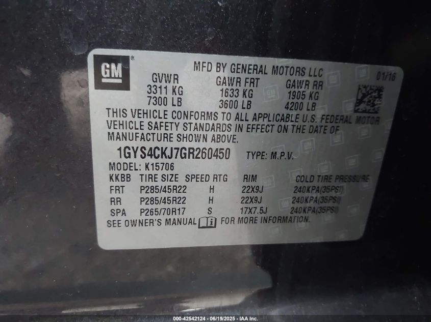 2016 CADILLAC ESCALADE | 1GYS4CKJ7GR260450