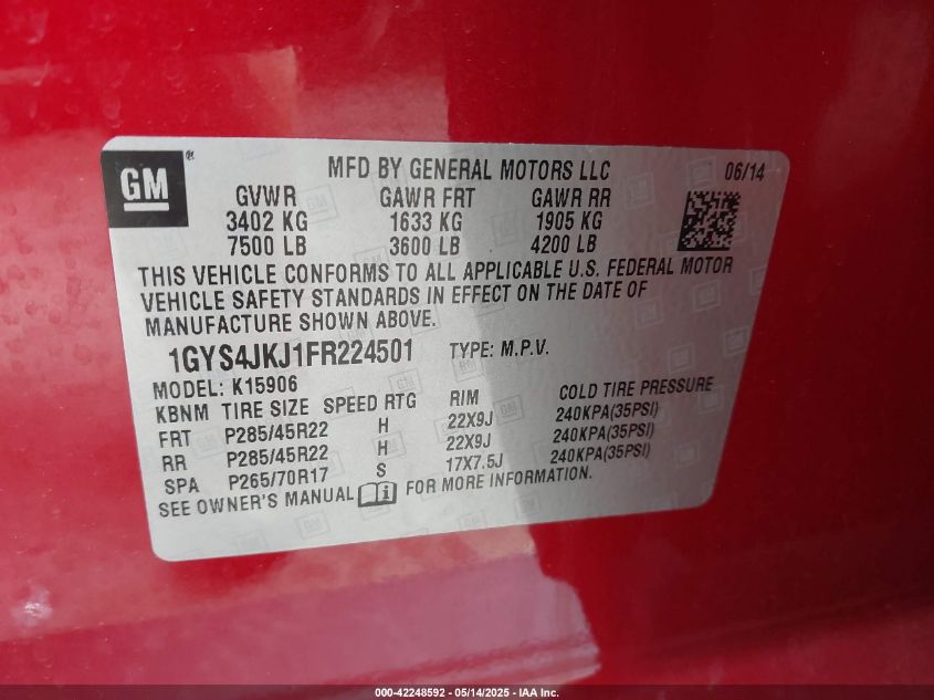 2015 CADILLAC ESCALADE | 1GYS4JKJ1FR224501