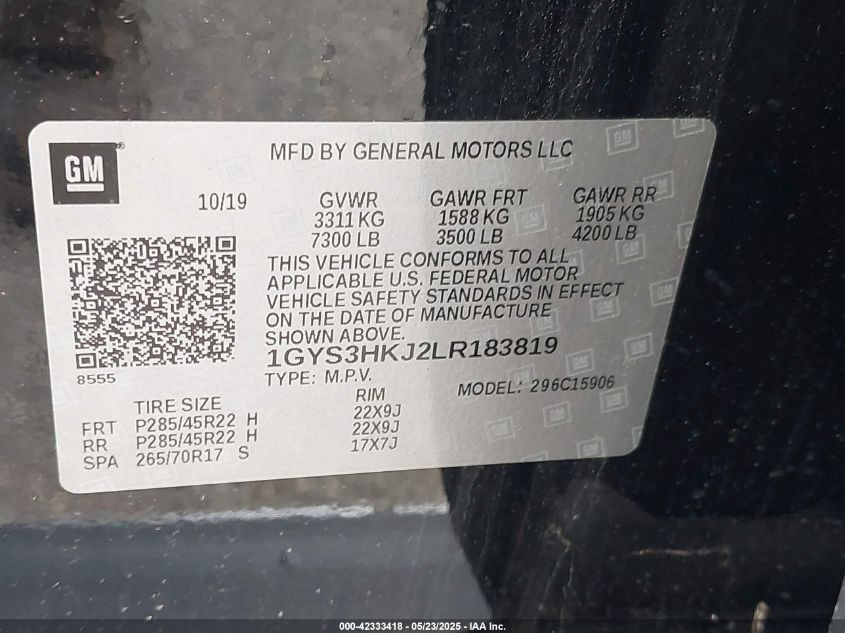 2020 CADILLAC ESCALADE ESV | 1GYS3HKJ2LR183819
