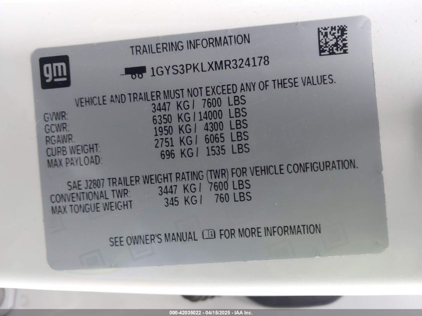 2021 CADILLAC ESCALADE ESV | 1GYS3PKLXMR324178