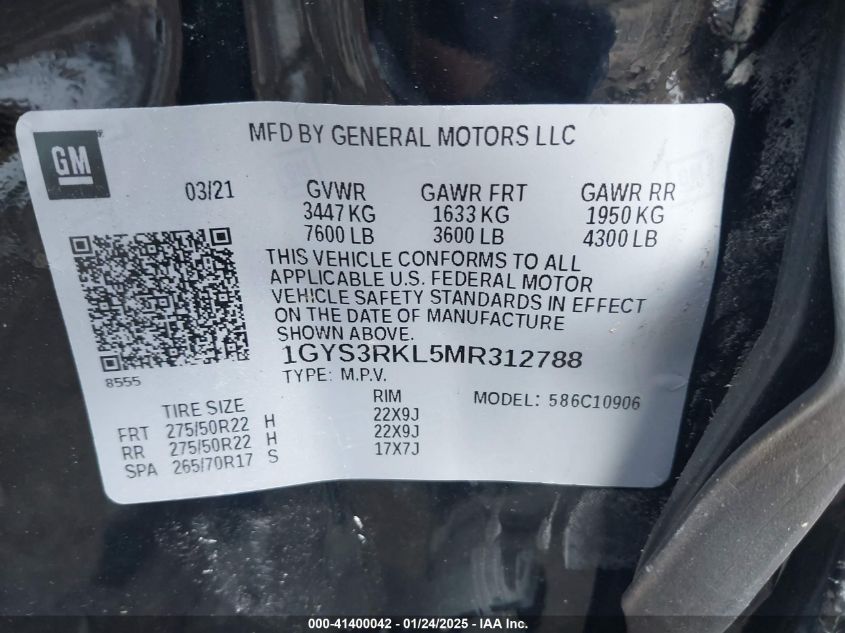 2021 CADILLAC ESCALADE ESV | 1GYS3RKL5MR312788