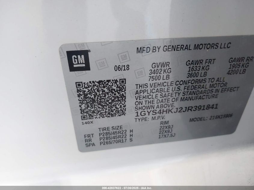2018 CADILLAC ESCALADE ESV | 1GYS4HKJ2JR391841