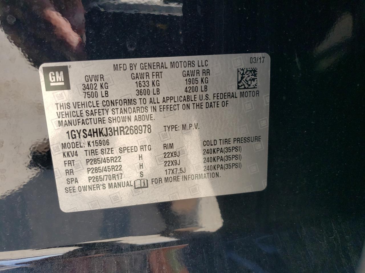 2017 CADILLAC ESCALADE ESV | 1GYS4HKJ3HR268978