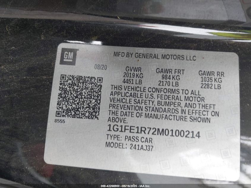 2021 CHEVROLET CAMARO | 1G1FE1R72M0100214