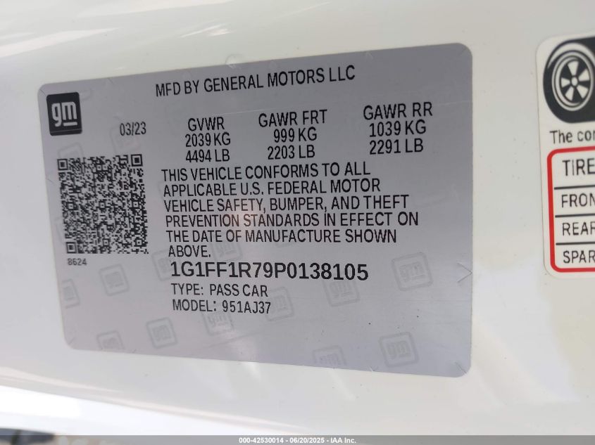 2023 CHEVROLET CAMARO | 1G1FF1R79P0138105
