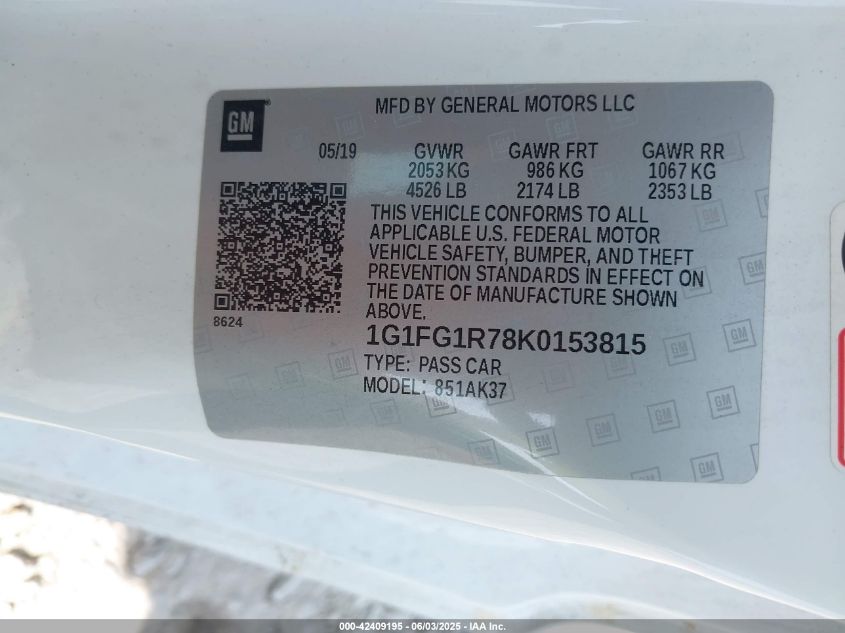 2019 CHEVROLET CAMARO | 1G1FG1R78K0153815