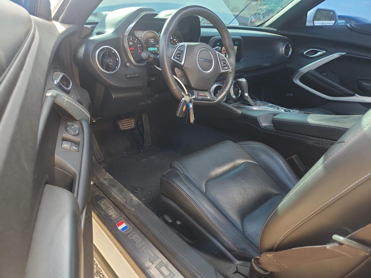 Inside, the Camaro’s cabin offered a range of materials and themes tailored to trim level and package. Base models came with Jet Black cloth or leather, while upper trims introduced two-tone leather combinations, suede inserts, contrast stitching, and ambient lighting. Colors like Kalahari, Adrenaline Red, Ceramic White, and Medium Ash Gray allowed for sporty or upscale personalization. Performance trims such as the 1LE and ZL1 featured Recaro sport seats, suede-wrapped steering wheels, red seatbelts, and minimalist, track-oriented trims. While the cabin retained a driver-focused layout, improvements over the previous generation included an updated infotainment system, digital instrument options, and more premium soft-touch materials.