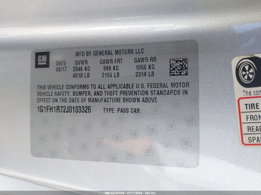 2018 CHEVROLET CAMARO | 1G1FH1R72J0103326
