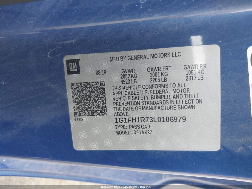 2020 CHEVROLET CAMARO | 1G1FH1R73L0106979