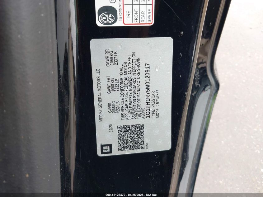 2021 CHEVROLET CAMARO | 1G1FH1R75M0120917