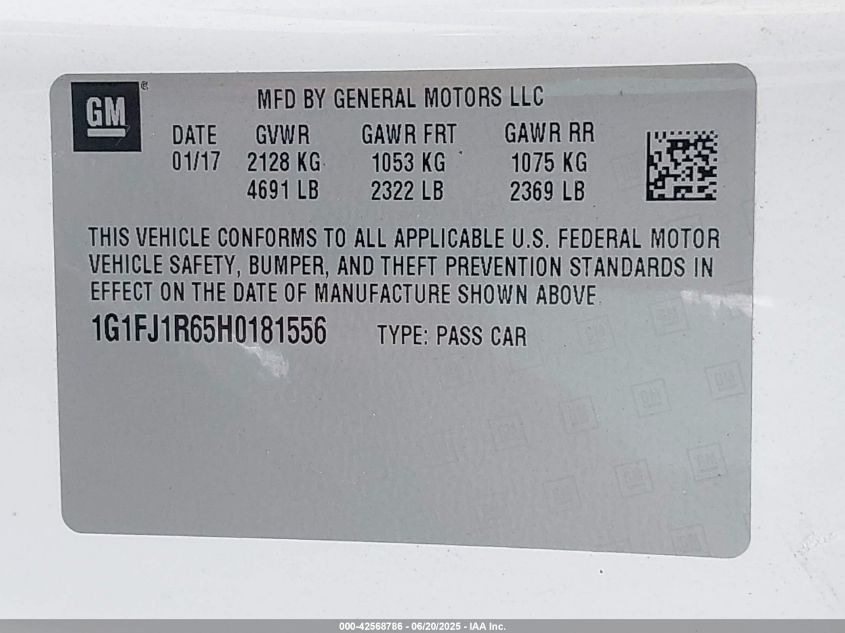 2017 CHEVROLET CAMARO | 1G1FJ1R65H0181556