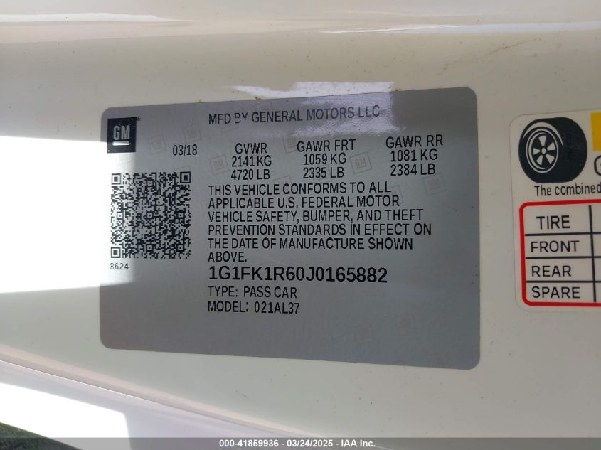 2018 CHEVROLET CAMARO | 1G1FK1R60J0165882