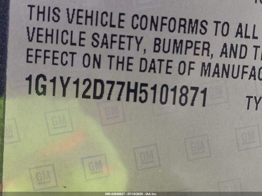2017 CHEVROLET CORVETTE | 1G1Y12D77H5101871