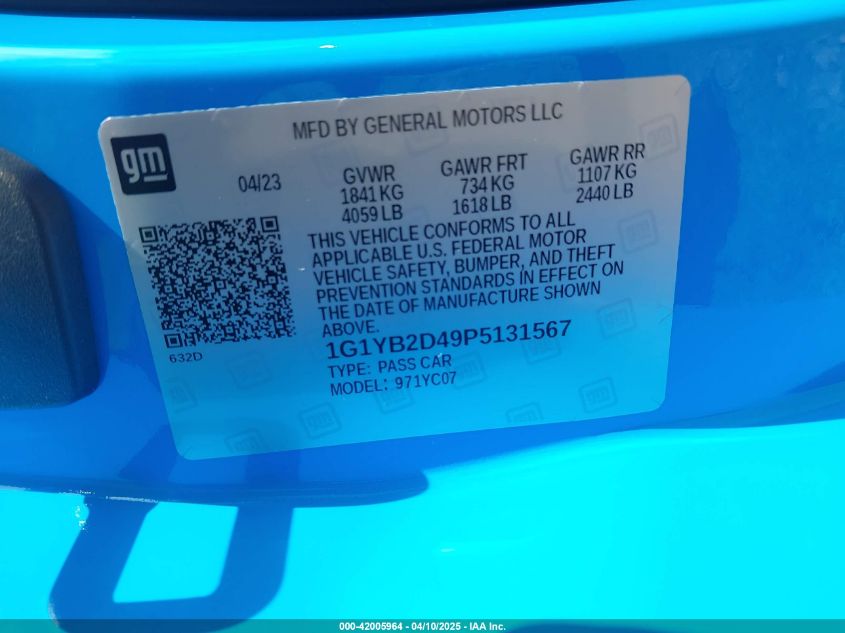 2023 CHEVROLET CORVETTE | 1G1YB2D49P5131567