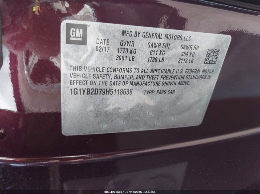 2017 CHEVROLET CORVETTE | 1G1YB2D79H5118636