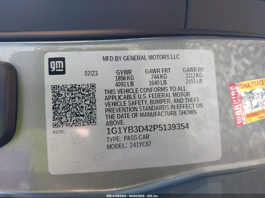 2023 CHEVROLET CORVETTE | 1G1YB3D42P5139354