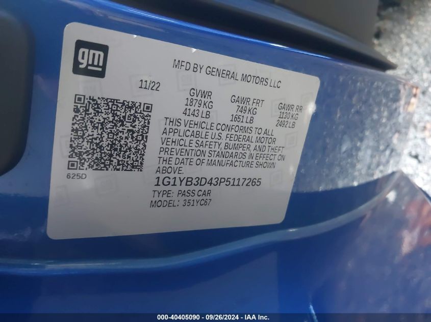 2023 CHEVROLET CORVETTE | 1G1YB3D43P5117265