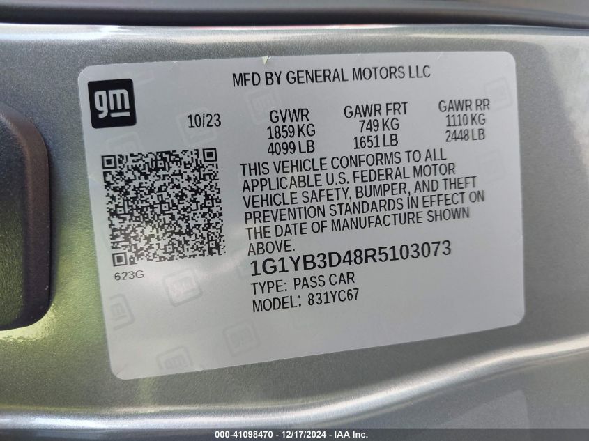 2024 CHEVROLET CORVETTE | 1G1YB3D48R5103073