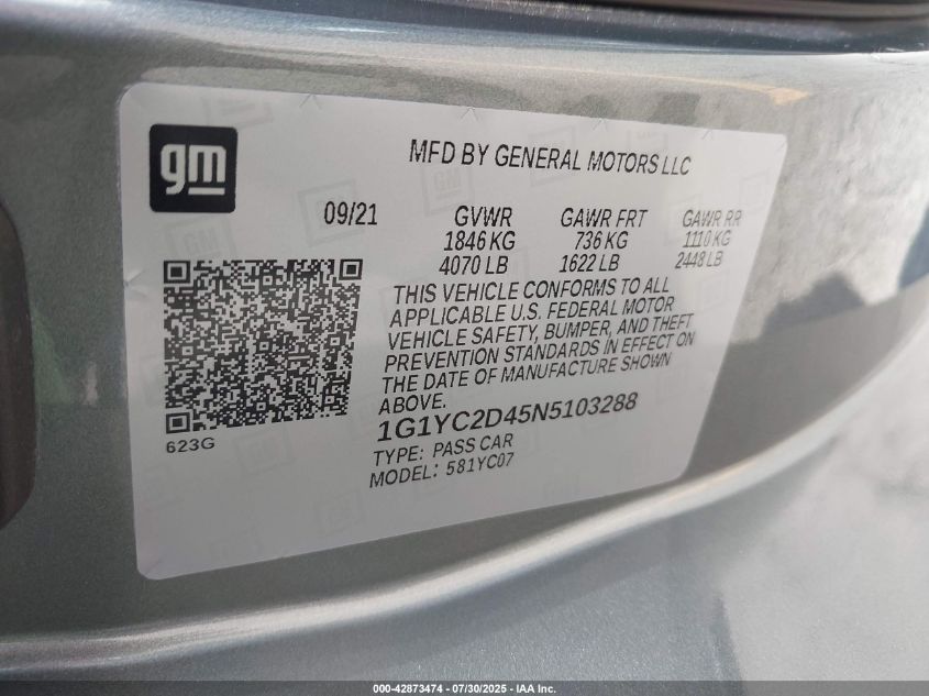 2022 CHEVROLET CORVETTE | 1G1YC2D45N5103288