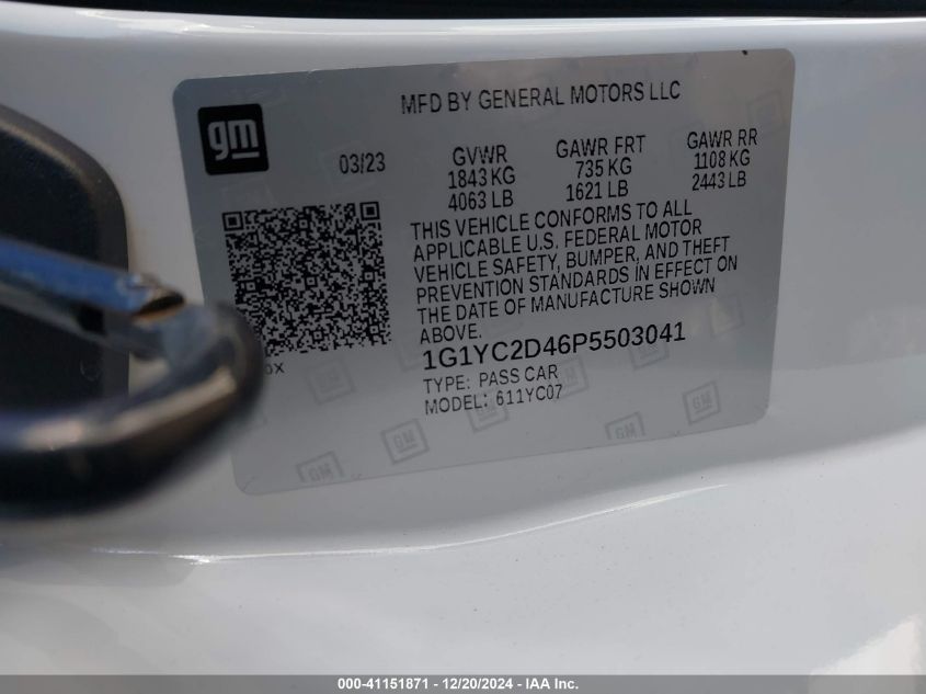 2023 CHEVROLET CORVETTE | 1G1YC2D46P5503041