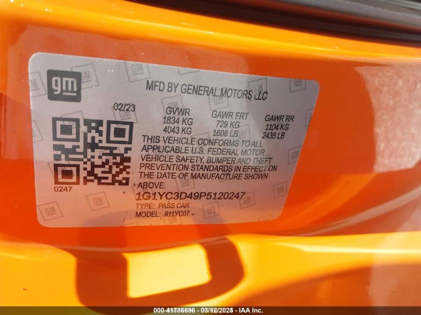 2023 CHEVROLET CORVETTE | 1G1YC3D49P5120247