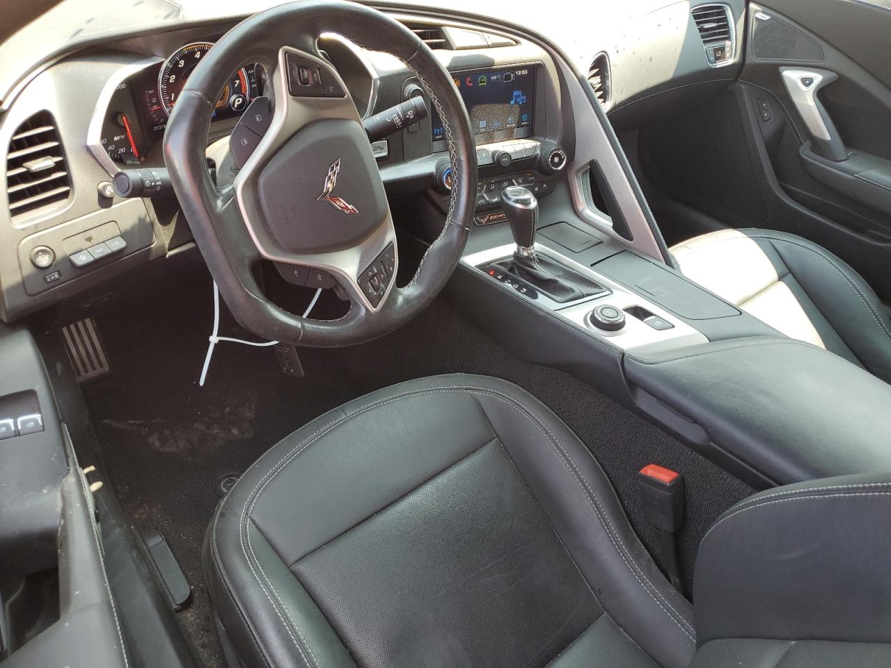 Inside, the C7 moved the Corvette into true luxury-sport territory. Materials improved dramatically over the C6, with Nappa leather, suede microfiber, and real carbon fiber inserts available. Performance bucket seats with magnesium frames were optional, and trims ranged from Jet Black to Adrenaline Red, Kalahari Brown, and Twilight Blue. Higher trims included color-stitched interiors, aluminum accents, and contrast seat belts. The cabin featured an 8” touchscreen with Performance Data Recorder (PDR), Apple CarPlay, and a customizable digital gauge cluster.