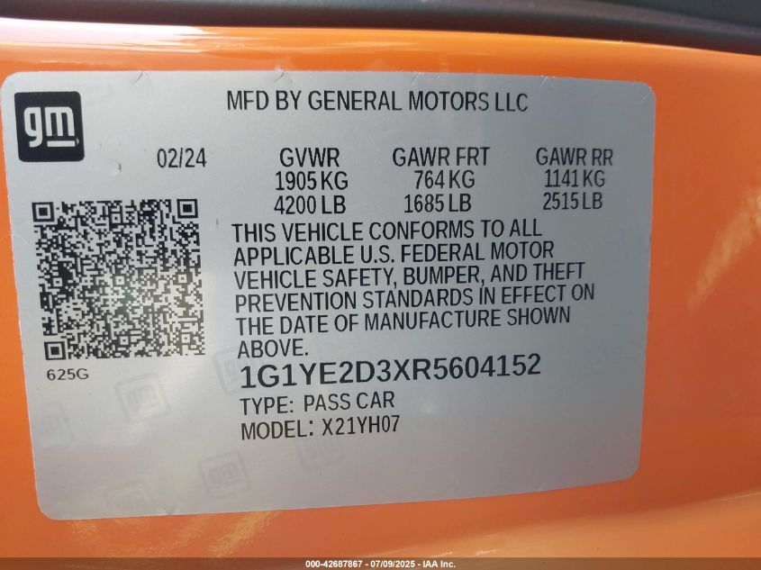 2024 CHEVROLET CORVETTE | 1G1YE2D3XR5604152
