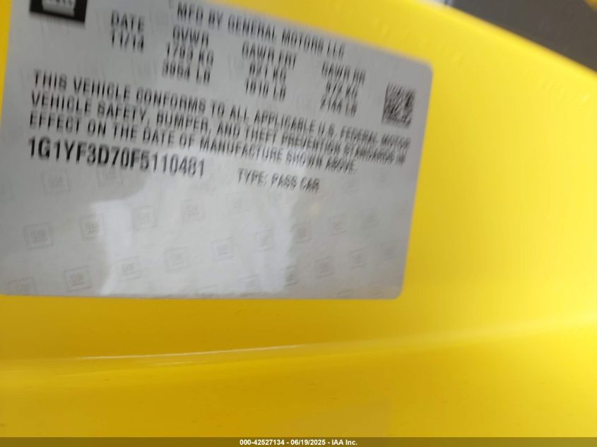 2015 CHEVROLET CORVETTE | 1G1YF3D70F5110481