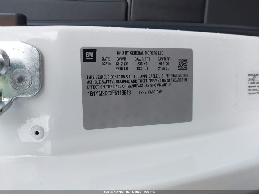 2015 CHEVROLET CORVETTE | 1G1YM2D72F5119618