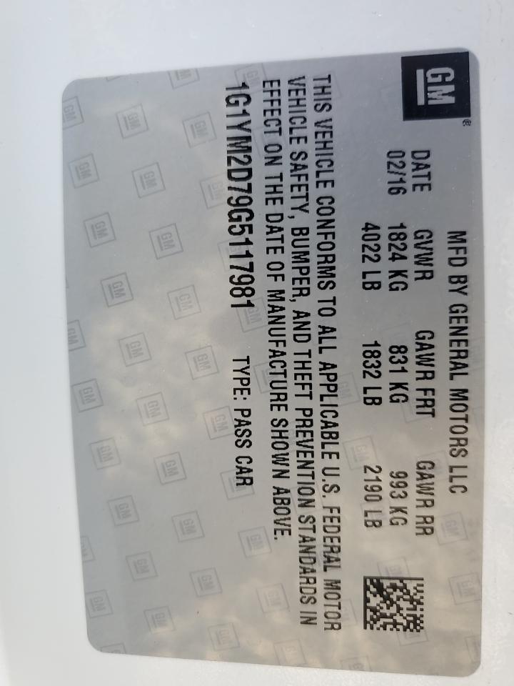 2016 CHEVROLET CORVETTE | 1G1YM2D79G5117981