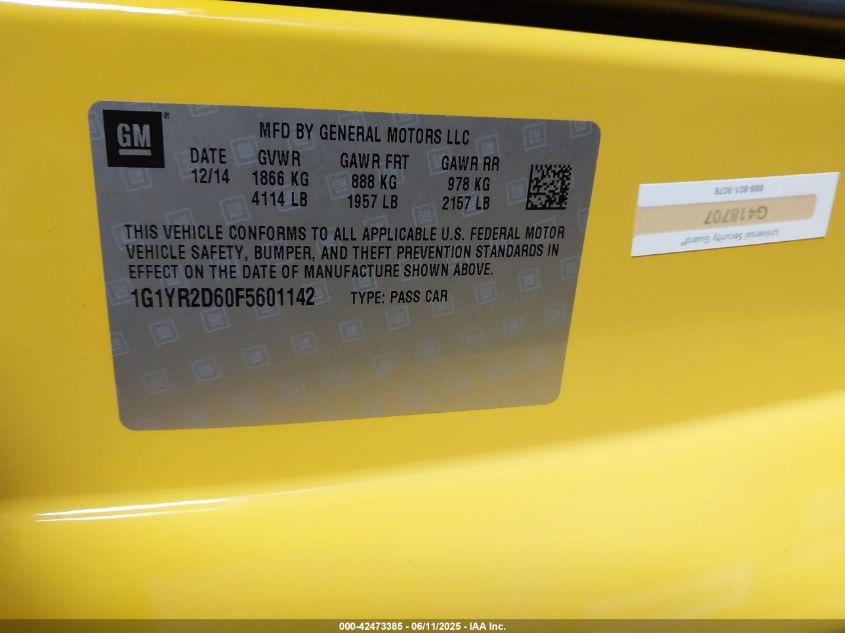 2015 CHEVROLET CORVETTE | 1G1YR2D60F5601142