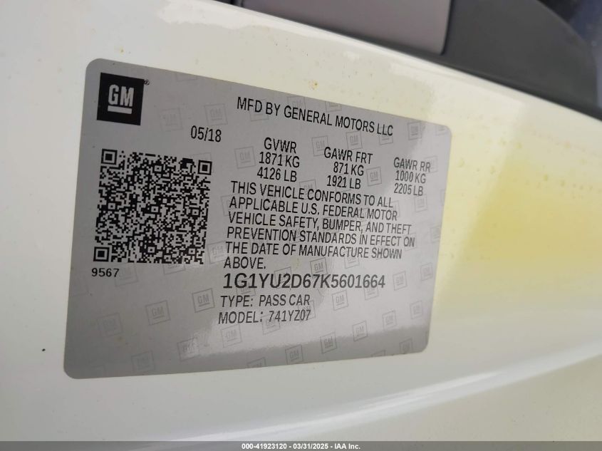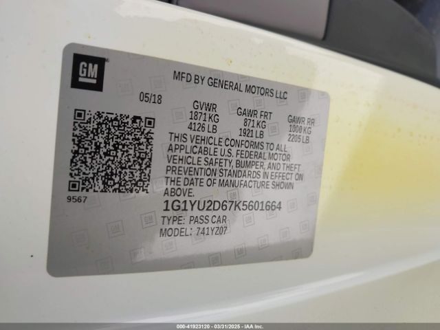 2019 CHEVROLET CORVETTE | 1G1YU2D67K5601664