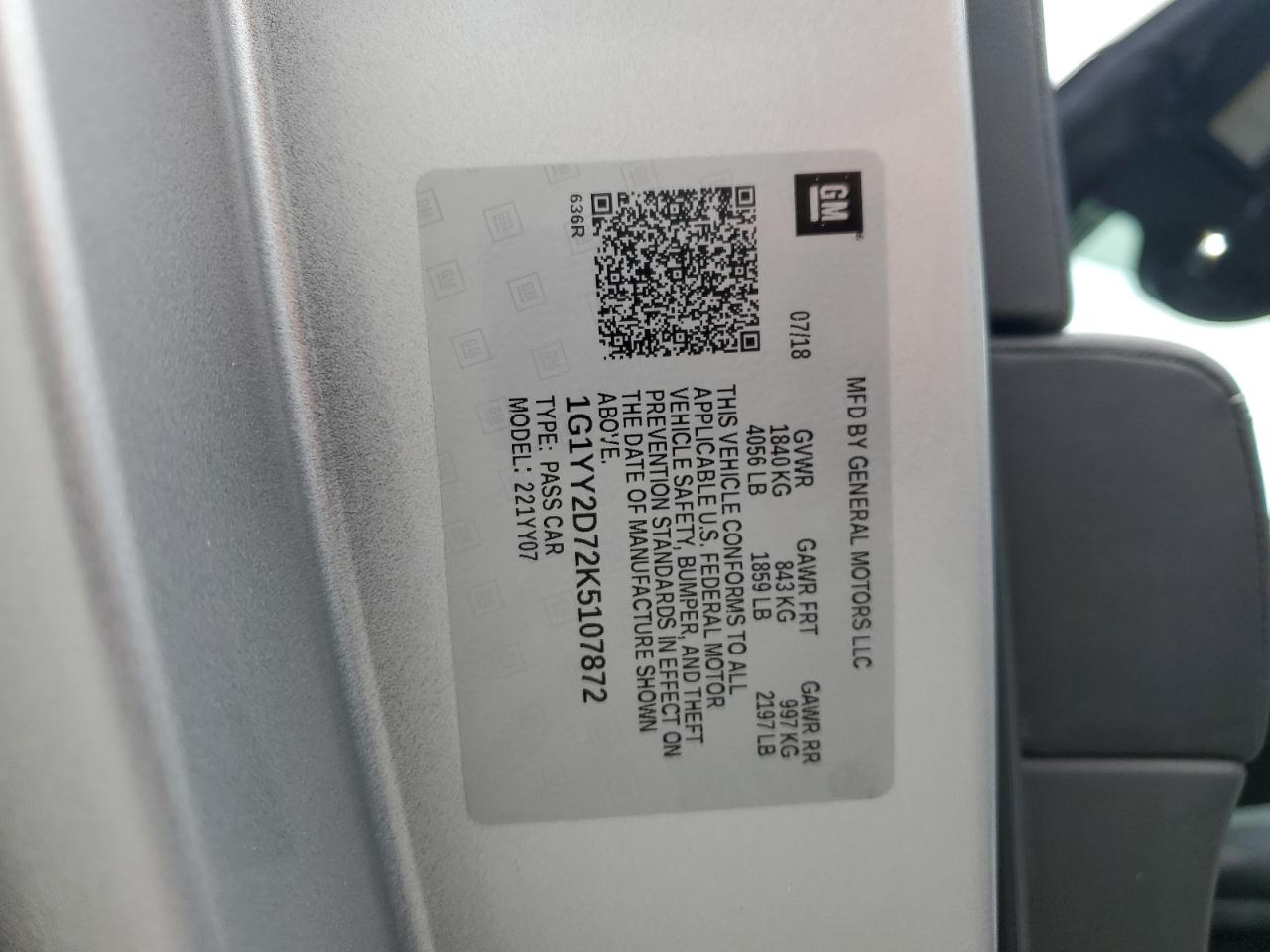 2019 CHEVROLET CORVETTE | 1G1YY2D72K5107872