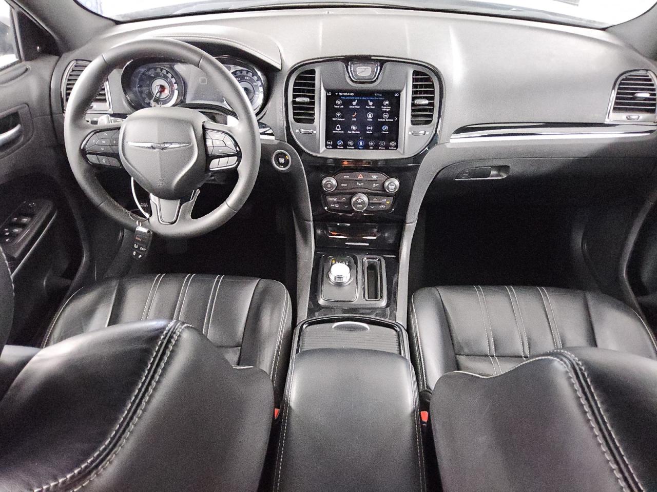 Inside, the 300C offered a range of upscale upholstery and trim combinations. Standard interiors featured leather-trimmed seating in Black or Linen, with soft-touch materials and satin chrome or wood accents. Higher trims and special editions introduced premium Nappa leather with contrast stitching, heated and ventilated front seats, and memory functions. Color themes such as Indigo/Linen, Deep Mocha, and Black with Piano Black or real wood accents enhanced the upscale feel. In performance-oriented 300S models, the interior took on a sportier tone with leather and suede inserts, sport bucket seats, and blacked-out trim. The use of quilted patterns, stitched dash panels, and ambient lighting in upper trims elevated the cabin experience to rival near-luxury imports.